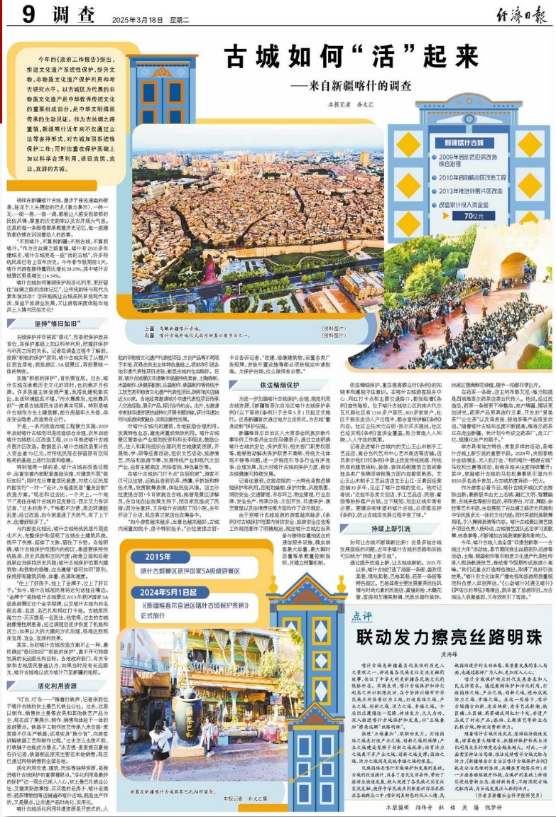 今年的《政府工作報(bào)告》提出,推進(jìn)文化遺產(chǎn)系統(tǒng)性保護(hù),提升文物、非物質(zhì)文化遺產(chǎn)保護(hù)利用和考古研究水平。以古城區(qū)為代表的非物質(zhì)文化遺產(chǎn)是中華優(yōu)秀傳統(tǒng)文化的重要組成部分,是中華文明綿延傳承的生動(dòng)見(jiàn)證。作為古絲綢之路重鎮(zhèn),新疆喀什近年來(lái)不僅通過(guò)立法等多種形式,對(duì)古城加強(qiáng)系統(tǒng)性保護(hù)工作;同時(shí)注重在保護(hù)基礎(chǔ)上加以科學(xué)合理利用,建設(shè)宜居、宜業(yè)、宜游的古城。