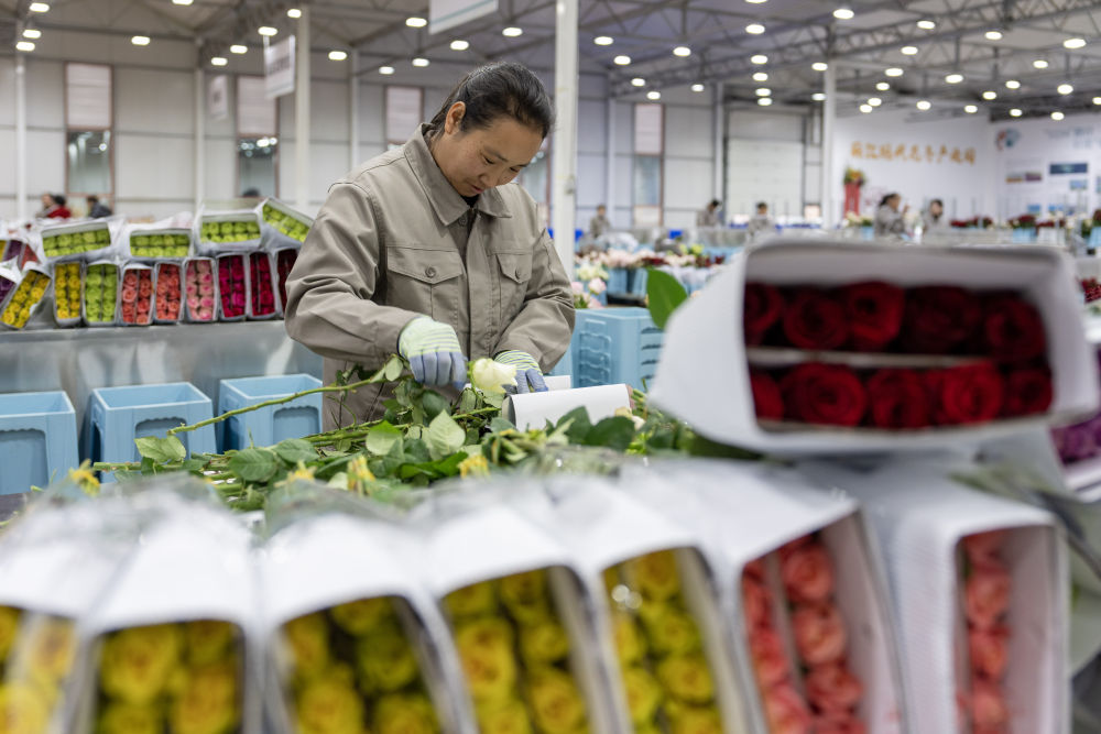 工作人員在打理用于線上銷售展示的鮮花(2025年1月22日攝)。新華社記者 陳欣波 攝