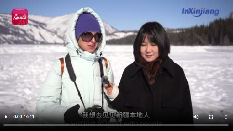 受邀做客本期《InXinjiang》欄目訪談的,是來(lái)自白俄羅斯的記者瑪麗娜。這是她第二次到新疆,走在喀納斯湖冰面上,她被眼前的美景和當(dāng)?shù)刎S富多彩的文化活動(dòng)深深吸引?,旣惸入y掩內(nèi)心歡喜:“現(xiàn)代化基礎(chǔ)設(shè)施與自然美景相得益彰,這是我喜歡新疆的理由。”