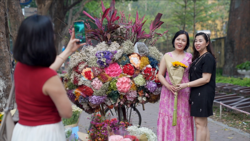 越南首都河內是一座愛花的城市,以自行車或摩托車為貨架的“鮮花巴士”遍布大街小巷,成為這座城市獨特的風景線。