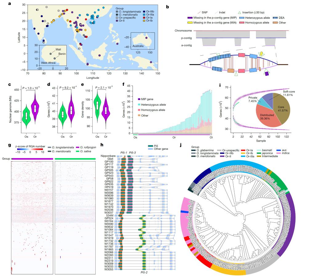 與原有公認的單個參考基因組相比,“栽培稻-野生稻泛基因組”新增了38.7億個堿基對,共包含69531個基因,其中近20%為野生稻特有,這些基因被證實與抗病防御、環(huán)境適應性等性狀密切相關。
