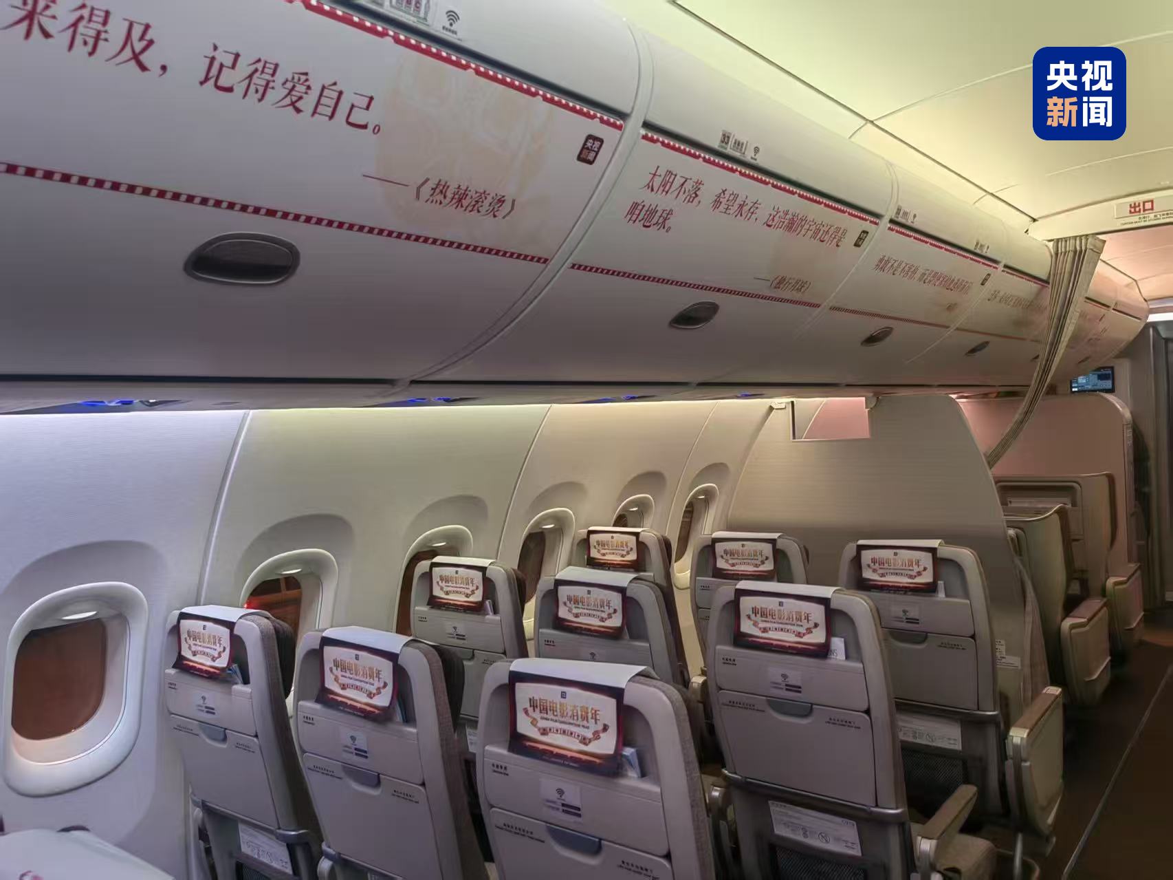 東方航空機(jī)艙內(nèi)展示眾多電影元素。