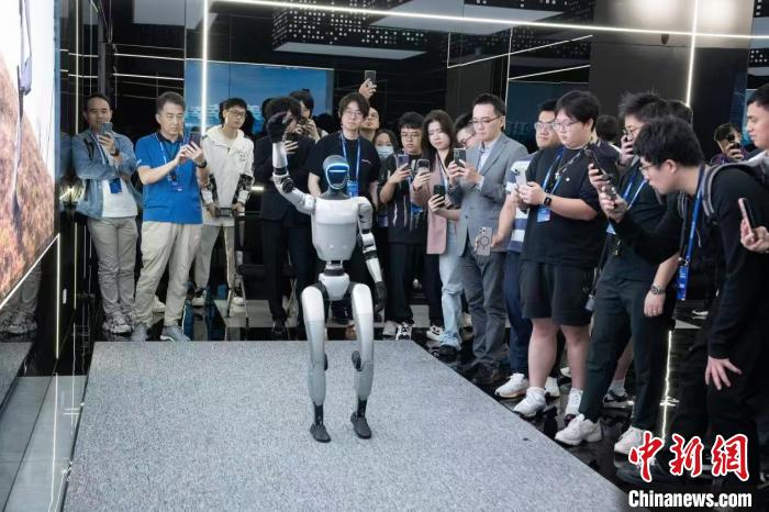 4月18日,港澳青年在杭州高新區(qū)(濱江)展廳觀看宇樹(shù)機(jī)器人表演。 吳君毅 攝
