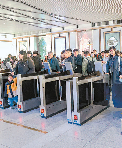 近日,“水韻江蘇”主題旅游列車(chē)首發(fā),開(kāi)啟了春天環(huán)游江蘇的序幕。該旅游列車(chē)分A、B線,A線由南通站至上海虹橋站往返,B線由上海站至徐州東站往返。圖為在揚(yáng)州東站,游客檢票乘坐“水韻江蘇”旅游列車(chē)。任 飛攝(人民視覺(jué))