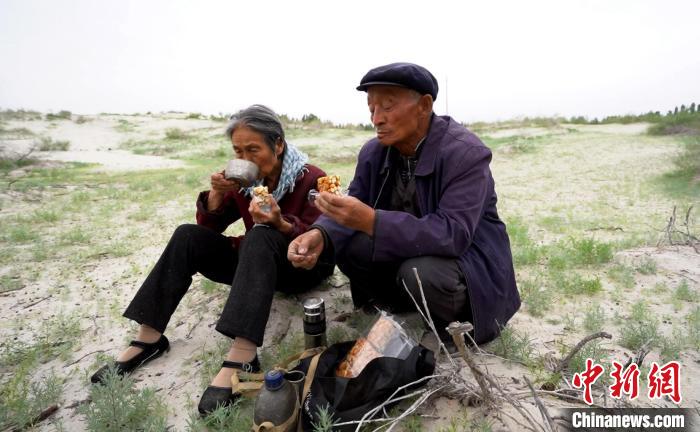 付志周帶著妻子從撿樹(shù)枝插栽開(kāi)始,與風(fēng)沙“死磕”。(資料圖)和靜縣融媒體中心供圖