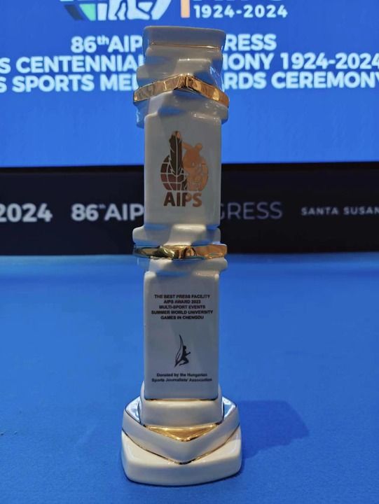 在2024年4月29日舉行的國際體育記者協會頒獎典禮上,成都大運會獲得2023年度綜合賽事最佳媒體設施服務獎。新華社發(fā)