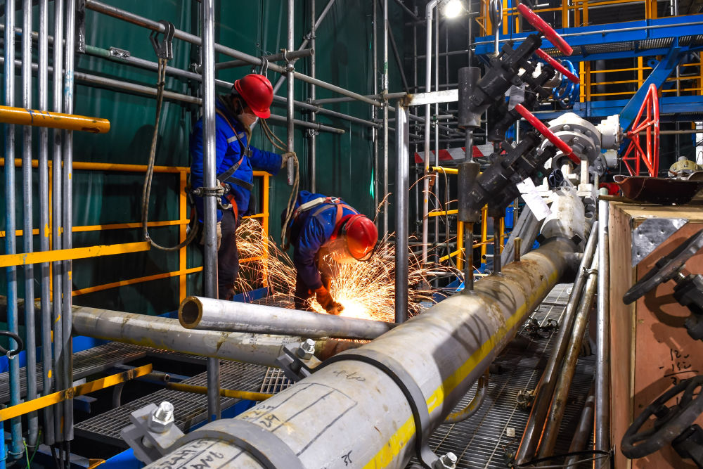 2月12日,工人在位于吉林省吉林市的中國石油吉林石化公司煉油化工轉型升級項目120萬噸/年乙烯裝置建設現(xiàn)場施工作業(yè)。新華社記者 許暢 攝