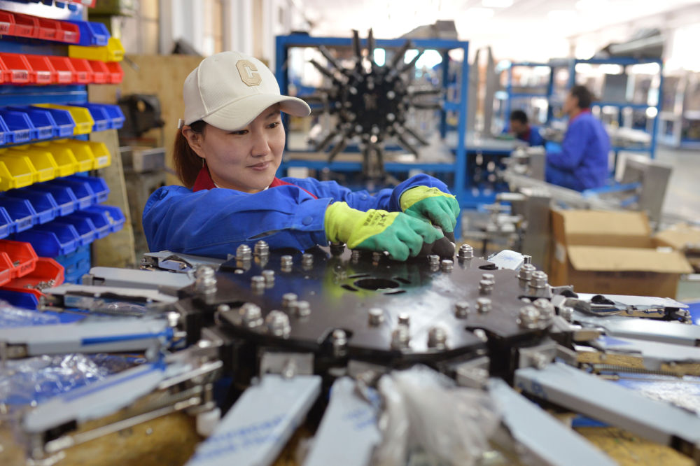 3月30日,在山東省青島市城陽區(qū)夏莊街道青島義龍裝備制造股份有限公司生產車間內,工人在組裝包裝機。新華社發(fā)(王海濱攝)