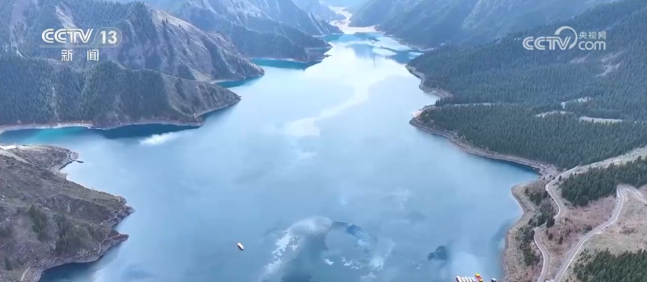 每年冬天,海拔1900多米的天山天池湖面封凍,封凍期達(dá)100多天?!拔逡弧鼻跋?,新疆阜康市天山天池景區(qū)冰雪消融,正式迎來(lái)“開(kāi)湖”。
