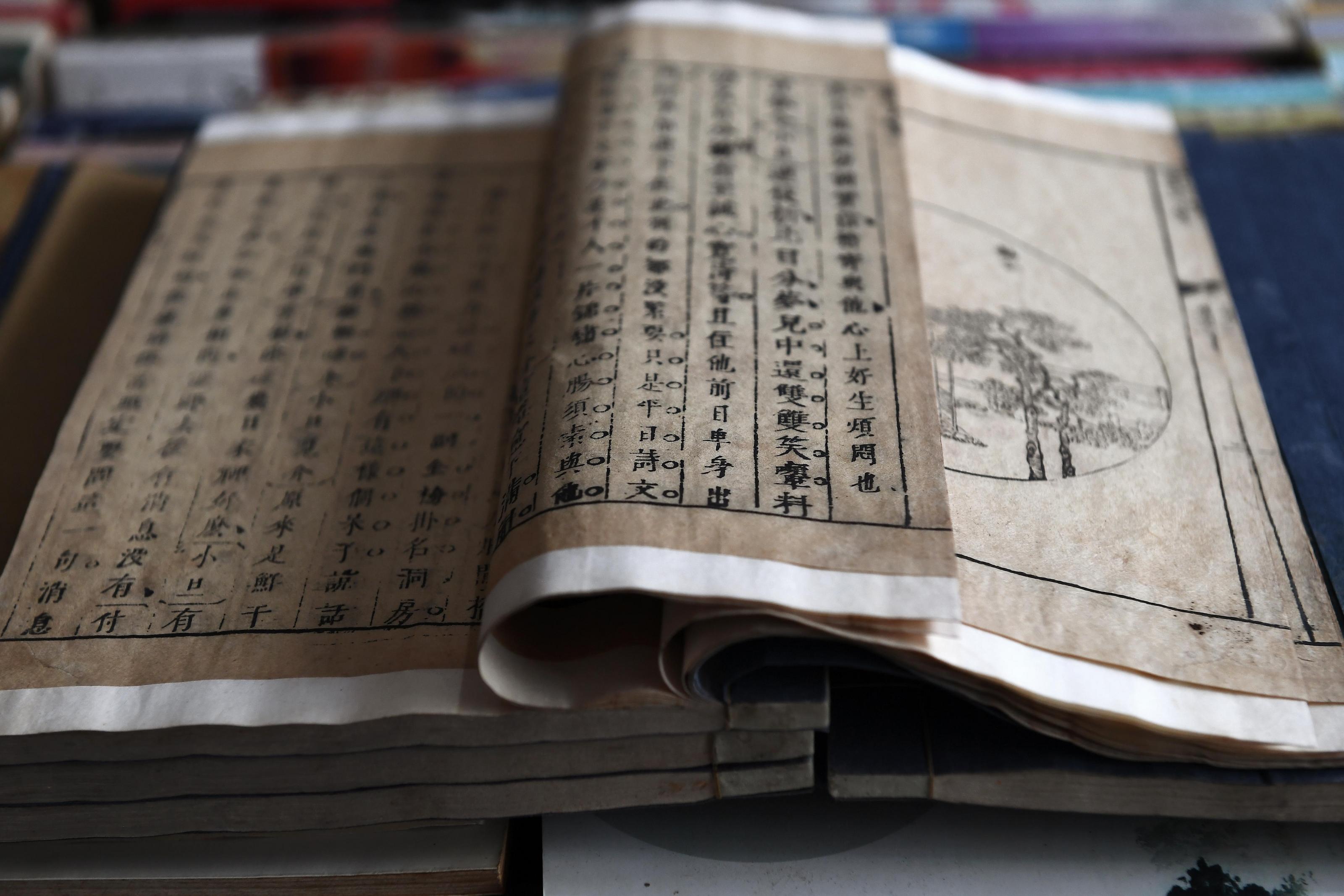 百歲老人守店,書(shū)架上的古書(shū)都更添了古韻與神采。線裝書(shū)脊微微發(fā)亮,紙頁(yè)間浮著墨香,夾在其中的白色標(biāo)簽泛著時(shí)光的黃暈,上面是毛筆標(biāo)記的名錄——《三國(guó)》《水滸》《山海經(jīng)》《論語(yǔ)》《王陽(yáng)明先生全集》《義門(mén)讀書(shū)記》《新刊校定集注杜詩(shī)》《宋六十名家詞》……