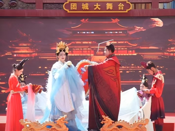 這是5月1日和田團城開城儀式上沉浸式舞劇《西巡傳說》的演出現(xiàn)場。