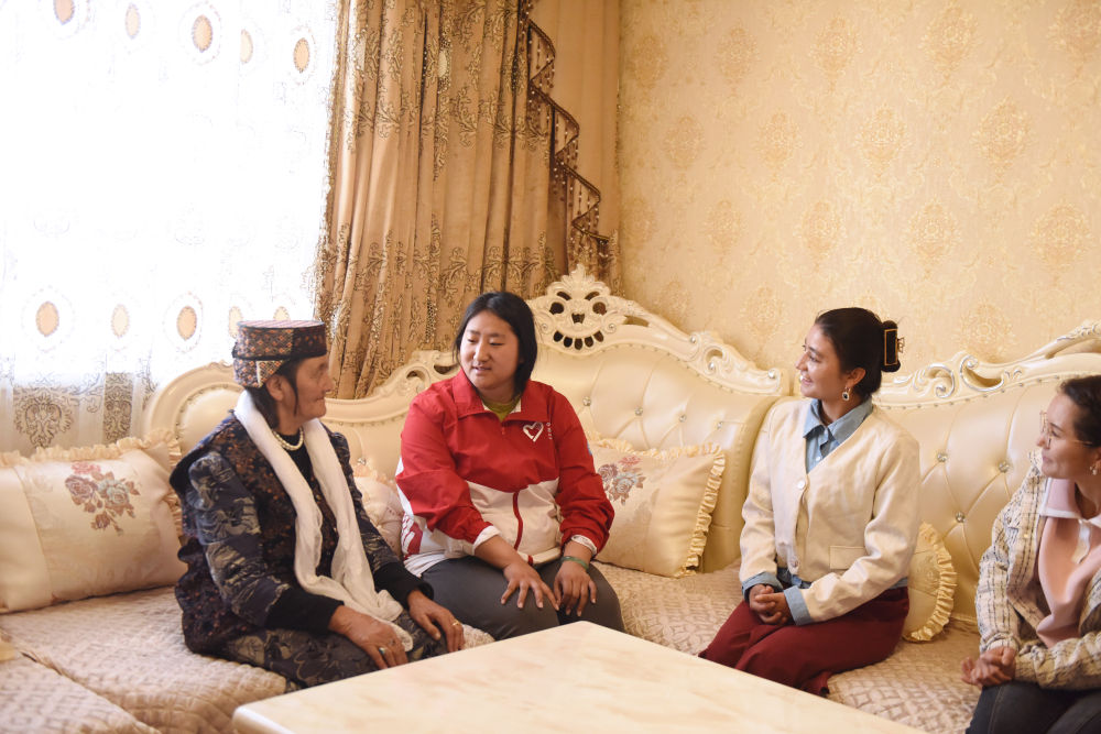 在新疆塔什庫爾干塔吉克自治縣,志愿者黃薈如(左二)在轄區(qū)內(nèi)入戶走訪(2025年4月14日攝)。新華社記者 高晗 攝