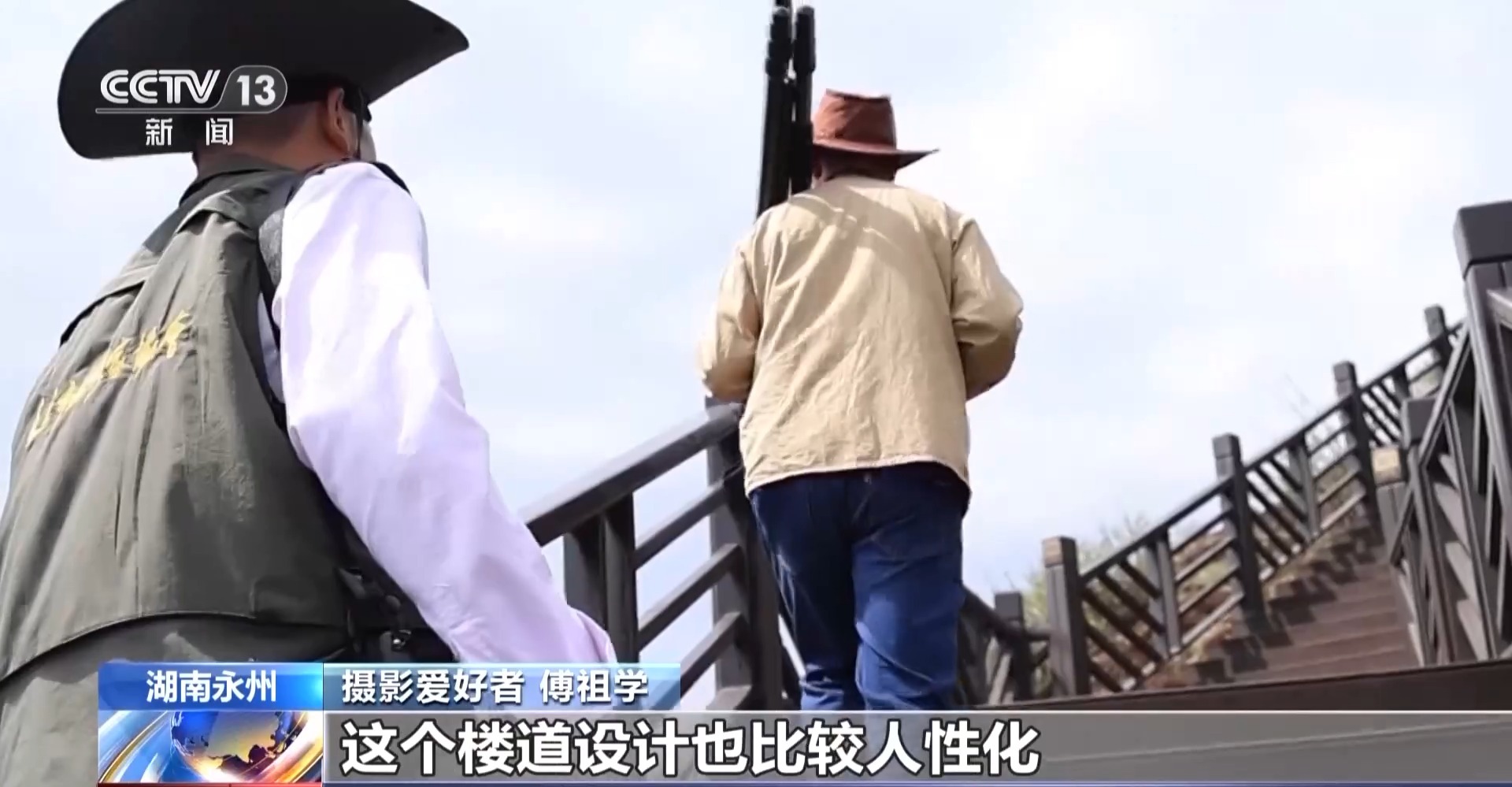 攝影愛(ài)好者 傅祖學(xué):我們?cè)谟^(guān)鳥(niǎo)之余,還可以順著樓道爬到山頂看風(fēng)景,這個(gè)樓道設(shè)計(jì)也比較人性化,每隔幾十米就有一個(gè)休憩的平臺(tái),爬累了就休息一會(huì)兒。