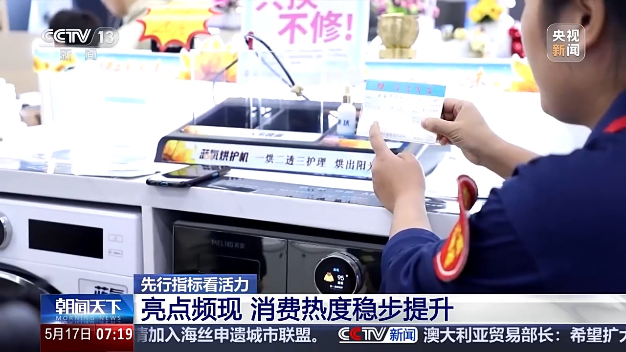 國(guó)家信息中心今天(17日)發(fā)布了一系列先行指標(biāo),記者從中發(fā)現(xiàn),4月份以來(lái),在一系列宏觀政策協(xié)同發(fā)力下,消費(fèi)、投資、工業(yè)生產(chǎn)等多領(lǐng)域保持向好態(tài)勢(shì)。