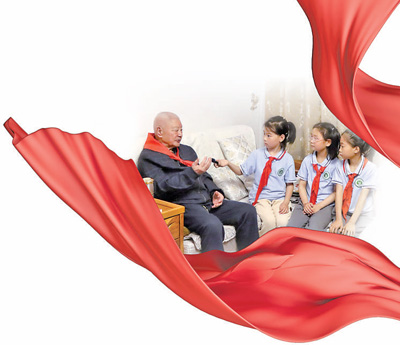 “謝謝你們?!笨讘椀碌皖^看著胸前的紅領(lǐng)巾,笑得像個孩子。他顫巍巍地想要站起身,但已經(jīng)十分困難。忽然,他張開口,斷斷續(xù)續(xù)地唱了起來:“向前,向前,向前!我們的隊(duì)伍向太陽……”聲音沙啞,甚至有些跑調(diào),但每一個字都咬得極重。“這么多年,他忘了許多事,但這首軍歌,他一句都沒忘,他最喜歡唱這首?!辩H鏘的旋律里,孔毅濕潤了眼眶。