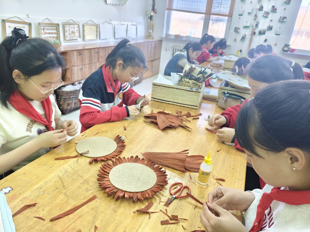 統(tǒng)部小學(xué)有一片十余畝的勞動(dòng)試驗(yàn)田,種滿了玉米。每到秋收時(shí)節(jié),任慧敏就帶著同學(xué)們到田里收集玉米皮,曬干加工成做手工的材料。任慧敏說:“學(xué)校開設(shè)了玉米皮粘貼畫社團(tuán)課程,用農(nóng)村隨處可見的玉米皮制作粘貼畫,很受學(xué)生們歡迎?!?/p>