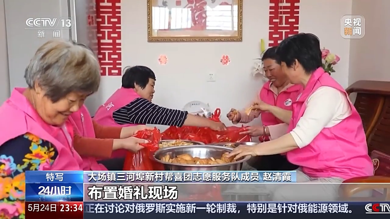 "幫喜團",是村里五十多名婦女組成的志愿服務(wù)隊。遇到村里有人家辦喜事,她們就會組織起來,義務(wù)幫著新人家里忙活兒,“幫喜團”的稱呼也是由此而來。