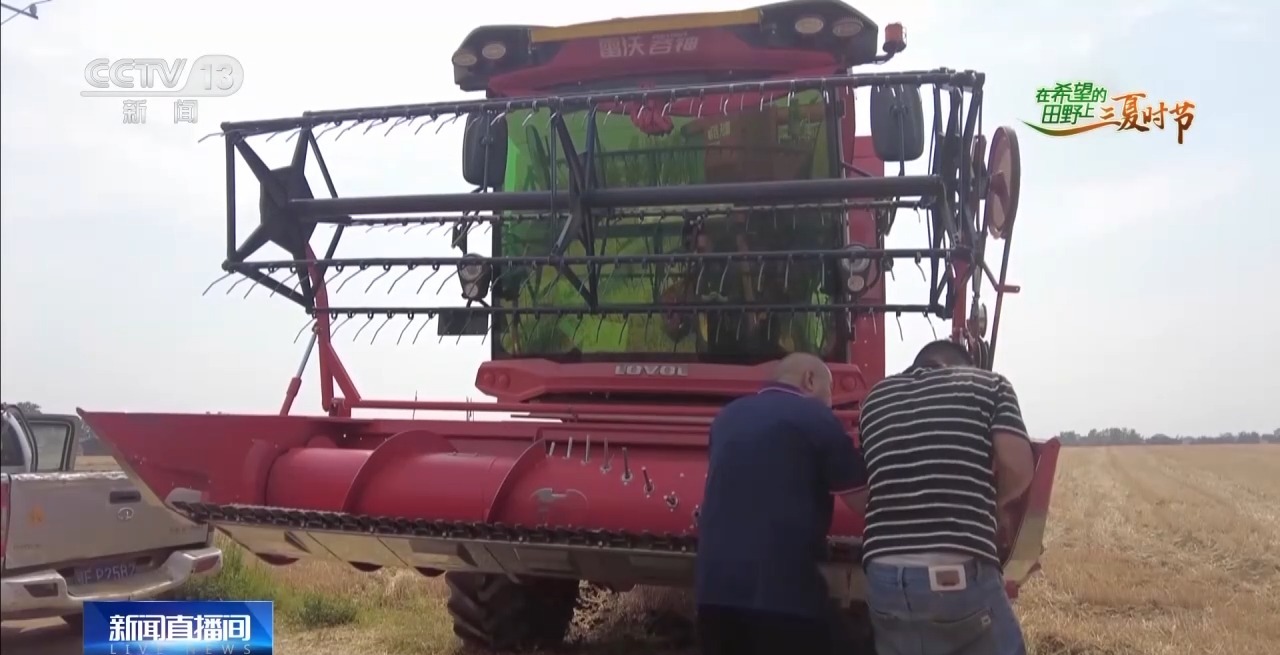農機維修也是夏收中非常重要的一個環(huán)節(jié)。在湖北省襄陽市襄州區(qū)黃龍鎮(zhèn)潘明村的1000畝大田里,6臺收割機正趕在雨前搶收。突然,一臺收割機出現(xiàn)故障止步不前,機手撥打維修電話20分鐘后,農機服務車趕到了麥田旁。經過檢修發(fā)現(xiàn),這臺收割機刀條發(fā)生了斷裂。