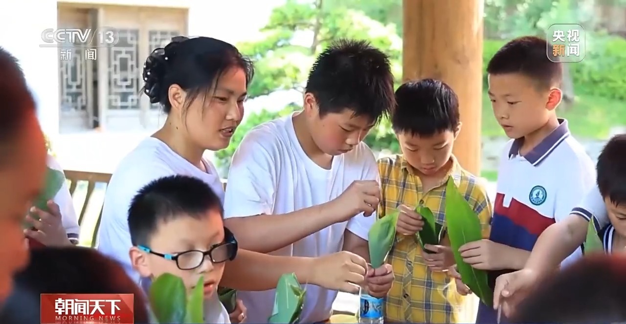 游客 周子菱:學會了自己動手包粽子,還學到了很多關于粽子的知識,知道粽葉要提前煮熟才能變軟,繩子要交叉綁,粽子才不會散。