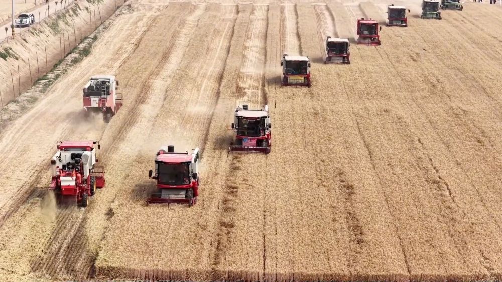 5月29日,位于河南省西華縣的黃泛區(qū)農(nóng)場內(nèi)麥浪滾滾。一望無際的麥田里,大型聯(lián)合收割機來回穿梭,這也標志著黃泛區(qū)農(nóng)場正式迎來今年小麥大面積機收。