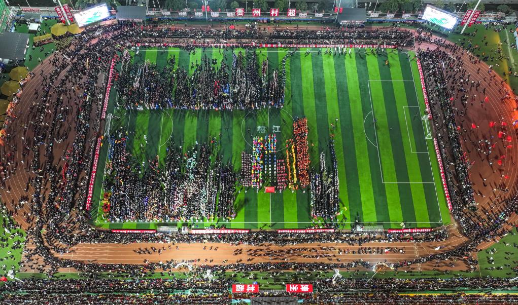 這是2025年貴州“村超”開幕式現(xiàn)場(chǎng)(無人機(jī)照片)。新華社記者 楊文斌 攝