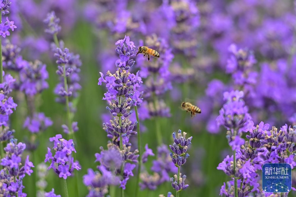 這是在新疆伊犁哈薩克自治州霍城縣解憂公主薰衣草農(nóng)場拍攝的薰衣草花田(6月14日攝)。