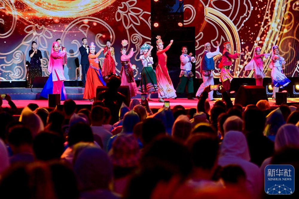 中國文聯(lián)文藝志愿服務(wù)團隊“送歡樂下基層”文藝演出在新疆伊犁哈薩克自治州霍城縣香水體育公園舉行(6月14日攝)。