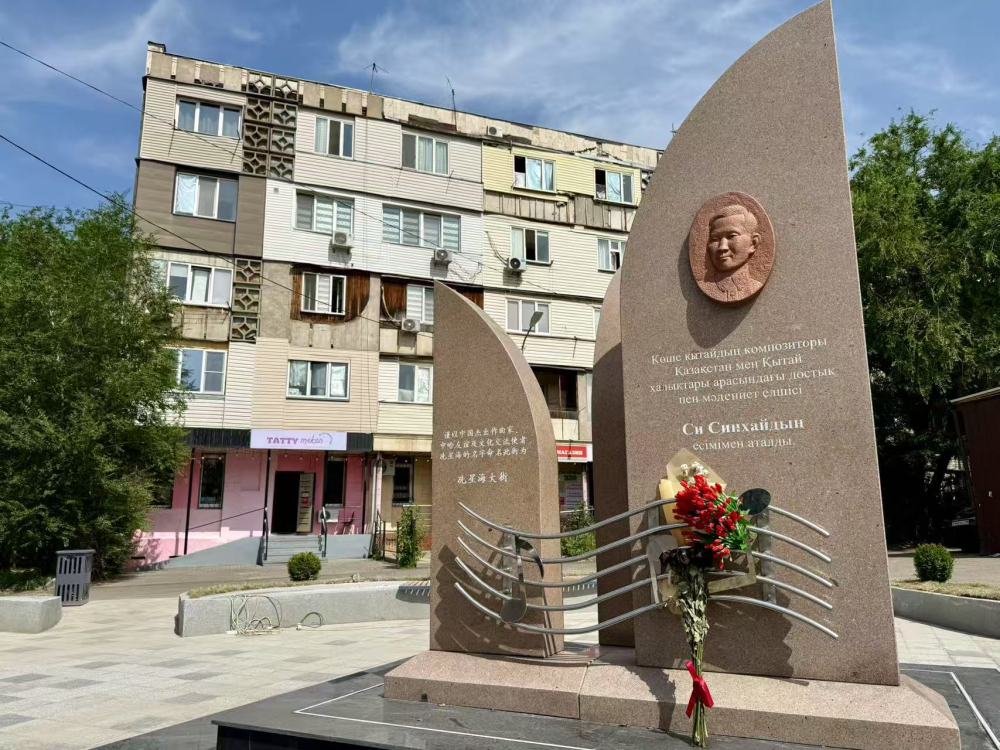 6月10日,在阿拉木圖拍攝的冼星海紀念碑。新華社記者 鄭開君 攝