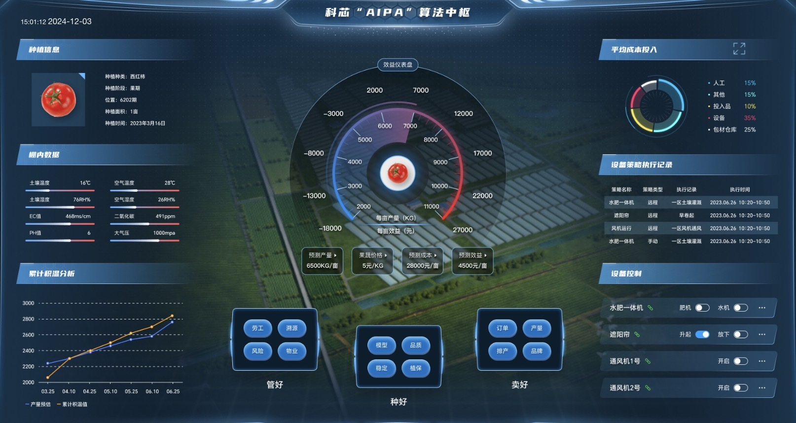 科芯自主研發(fā)的AIPA系統(tǒng),整合了多項新興技術(shù),能夠精準(zhǔn)描述作物的生長動態(tài),并作出生產(chǎn)力預(yù)測與效益評估。胡建龍形象地比喻:“這就像是給農(nóng)作物配備了一位24小時在線的‘智能管家’,它能根據(jù)作物的需求,自動調(diào)整灌溉、施肥、遮陽等操作,確保作物在最佳環(huán)境中生長?!?/p>