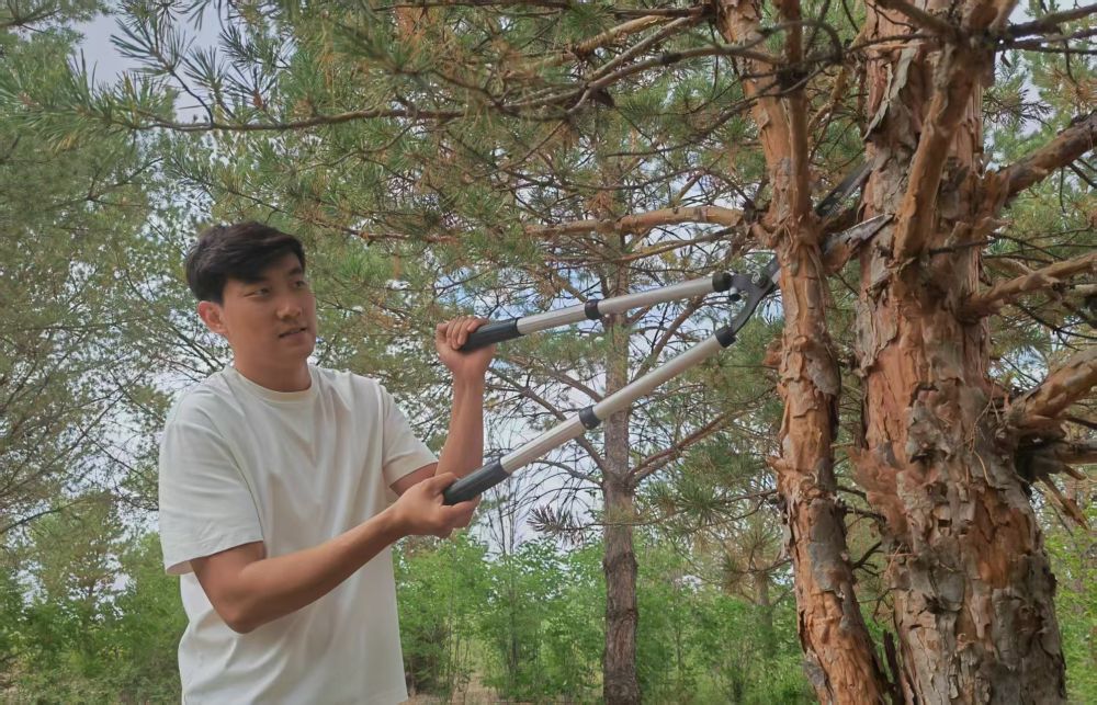 2017年,在爺爺?shù)膸ьI(lǐng)下,石健陽正式投身植綠事業(yè)。“過去沙害嚴(yán)重,老一輩治沙人最迫切的是要定住風(fēng)沙,讓地面先綠起來,所以當(dāng)時(shí)的樹種主要是生長快的楊樹?!笔£栒f,“幾十年過去,楊樹林老化嚴(yán)重,出現(xiàn)大面積枯死的情況。我們現(xiàn)在陸續(xù)對老化的林地進(jìn)行樹種更換,補(bǔ)種四季常青、生命周期更長的樟子松,目前已經(jīng)補(bǔ)種了5萬畝。”