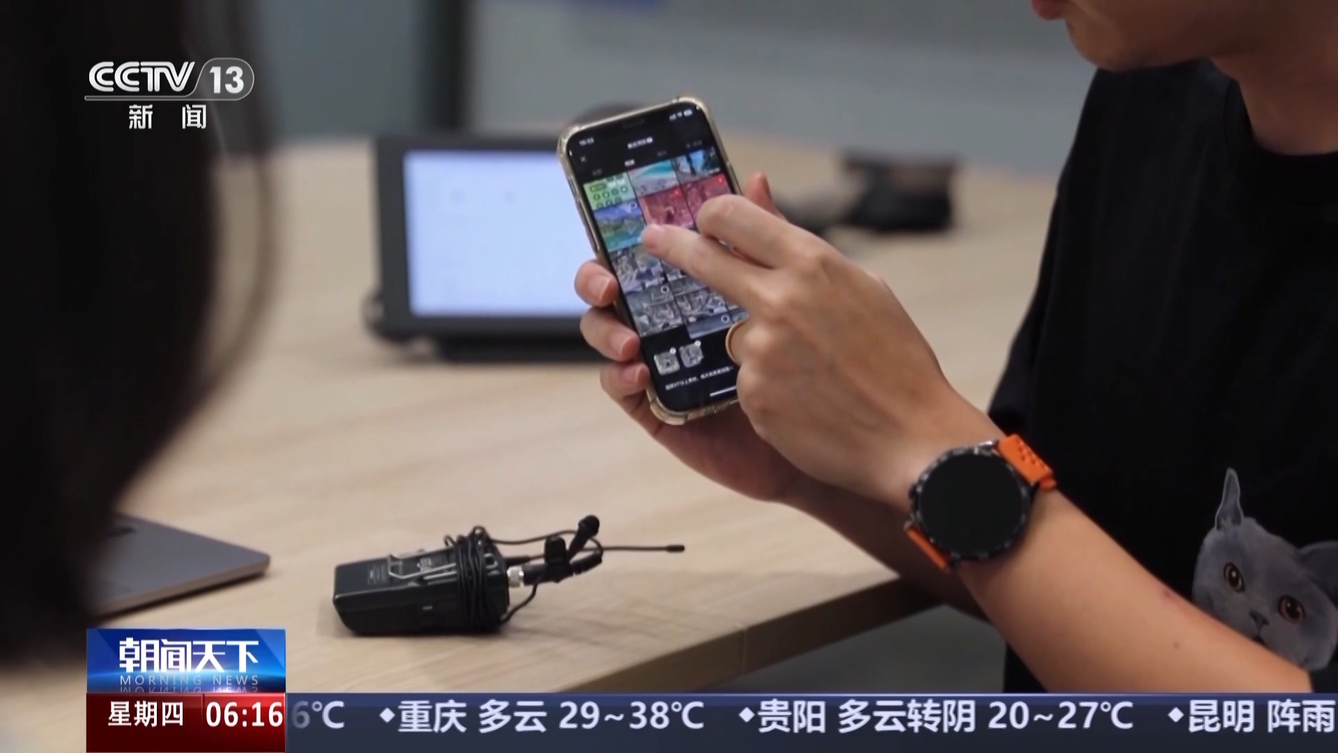您看這個(gè)全景相機(jī),記者拿著一甩,握桿就變成3米長,可以拍出這樣的效果,瞬間“飛出地球”。這個(gè)拇指相機(jī),只需把它戴在胸前,就能錄制第一視角的畫面。這個(gè)只有手掌大的小方塊,是個(gè)飛行相機(jī),它能精準(zhǔn)識(shí)別人臉,自動(dòng)跟隨人物進(jìn)行拍攝。我們的記者第一次使用這些設(shè)備,簡單學(xué)習(xí)就掌握了使用方法,而這些設(shè)備的使用場景也非常豐富,一些熱愛戶外運(yùn)動(dòng)的專業(yè)人士就用它們拍出了大片。