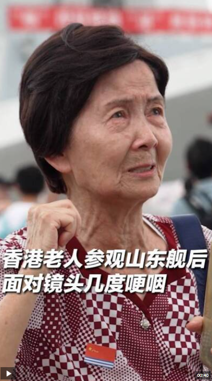 今天(7月5日)是山東艦航母編隊訪問香港開放參觀的第二天。一位香港老人參觀山東艦航母編隊后,面對鏡頭幾度哽咽:“我們以前都是受人欺負”“看我們中國一天比一天強大,我為我是一個中國人感到很驕傲,現(xiàn)在可以向世界大聲說,中國人民軍隊萬歲!”