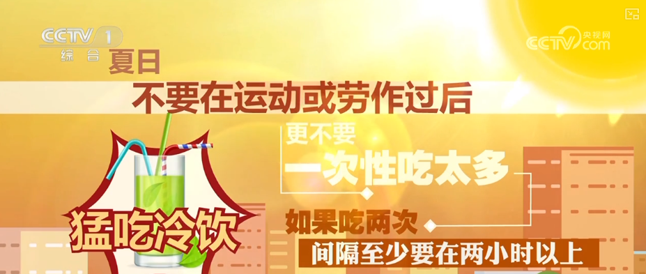 醫(yī)生建議,夏日不要在運動或勞作過后猛吃冷飲,更不要一次性吃太多,如果吃兩次,間隔至少要在兩小時以上。有偏頭痛等頭痛史的人或體溫調(diào)節(jié)中樞尚未發(fā)育完全的兒童慎食冷飲。