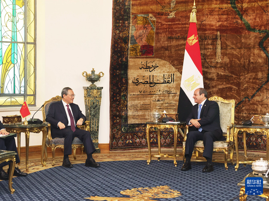 李強首先轉達習近平主席對塞西總統(tǒng)的親切問候。李強表示,近年來,在兩國元首戰(zhàn)略引領下,中埃關系蓬勃發(fā)展。中方愿同埃方一道,以明年中埃建交70周年為契機,賡續(xù)傳統(tǒng)友誼,鞏固政治互信,在涉及彼此核心利益問題上繼續(xù)堅定相互支持,不斷豐富中埃全面戰(zhàn)略伙伴關系內(nèi)涵,推動兩國各領域合作取得更多成果,朝著構建面向新時代的中埃命運共同體的目標持續(xù)邁進。