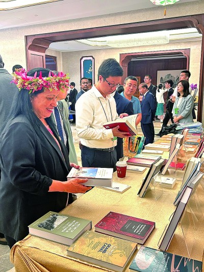 嘉賓在會(huì)場(chǎng)翻閱文史哲書(shū)籍。光明日?qǐng)?bào)記者 阮紫嫣攝/光明圖片