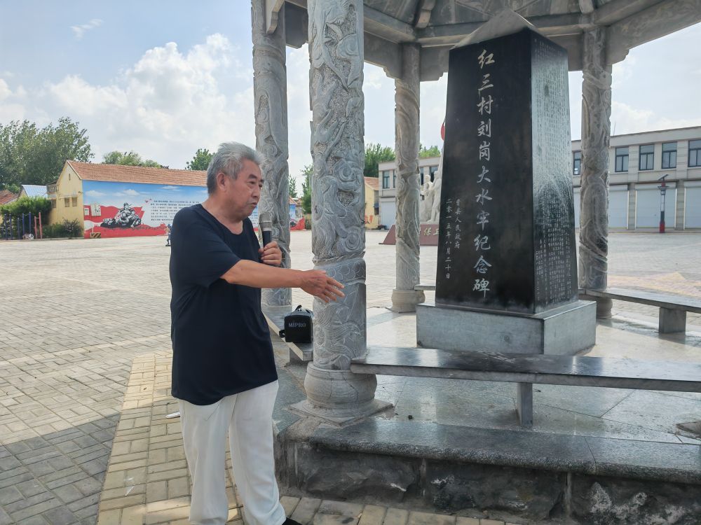 “1943年,日軍突襲劉崗村,嚴(yán)刑逼迫村民說出八路軍的秘密。眼看村民一個個被殺,冀魯豫邊區(qū)八路軍戰(zhàn)士秦興體站了出來,向侵略者高聲反抗,義無反顧獻(xiàn)出了生命……”在菏澤市曹縣韓集鎮(zhèn)劉崗村,74歲的義務(wù)講解員劉全義站在劉崗大水牢紀(jì)念碑前,動情講述著“紅三村”的抗日故事。