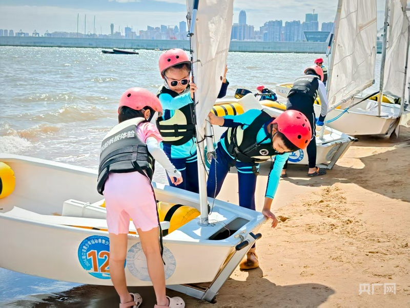孩子們體驗帆船運(yùn)動(央廣網(wǎng)記者 蔡文娟 攝)