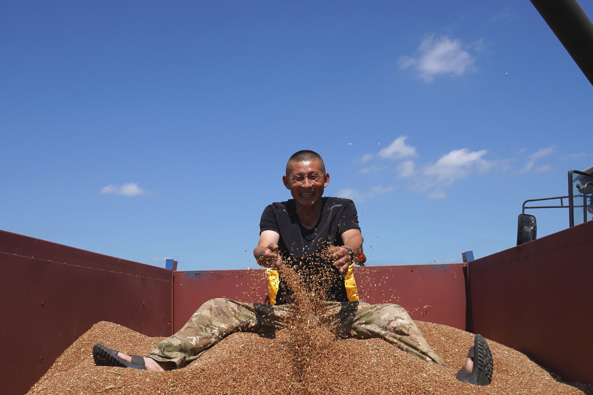 小冰麥豐收,農民心花怒放 (央廣網發(fā) 王凱 攝)