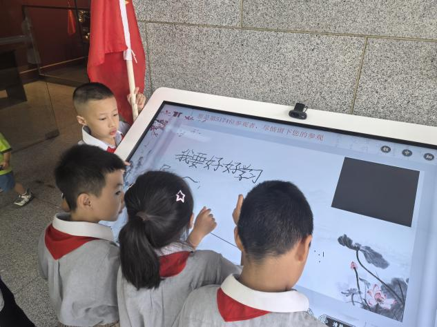 參觀完紀(jì)念館后,孩子們在電子留言版上留言(王莉莉/攝)