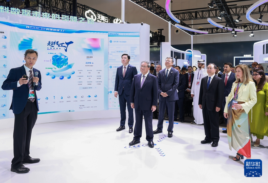 開幕式后,李強(qiáng)同與會外方嘉賓、國際組織代表共同巡館,并與有關(guān)科研機(jī)構(gòu)和企業(yè)負(fù)責(zé)人互動交流。