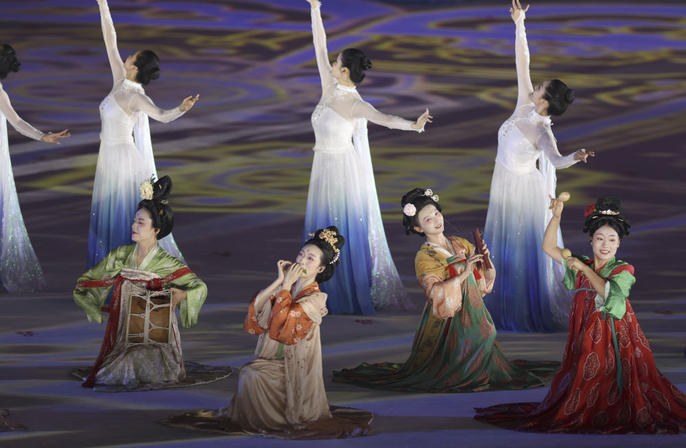 8月7日,演員在開幕式現(xiàn)場表演。新華社記者 杜子璇 攝