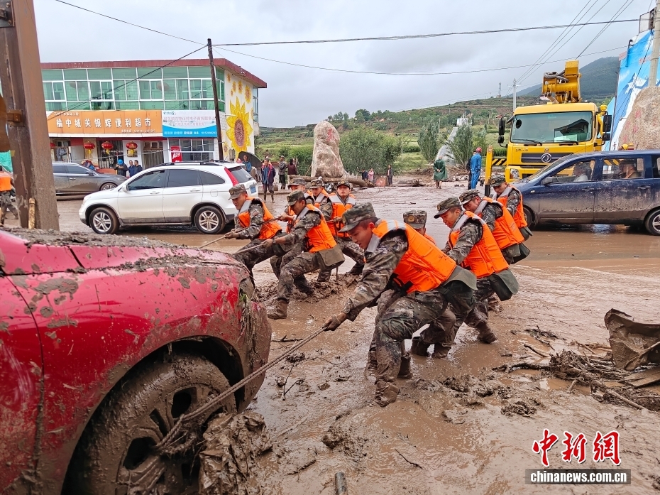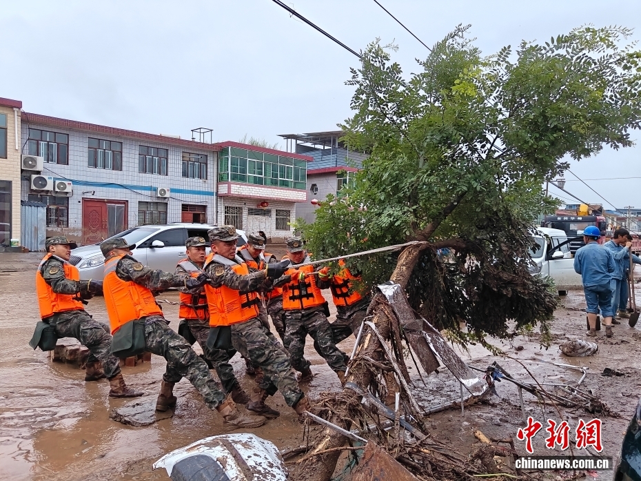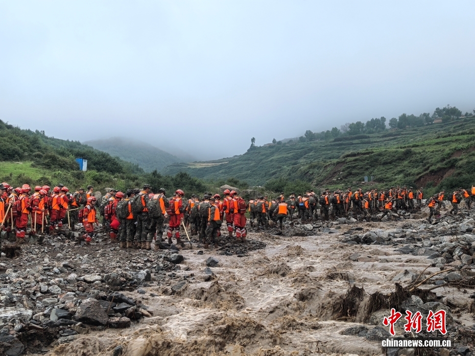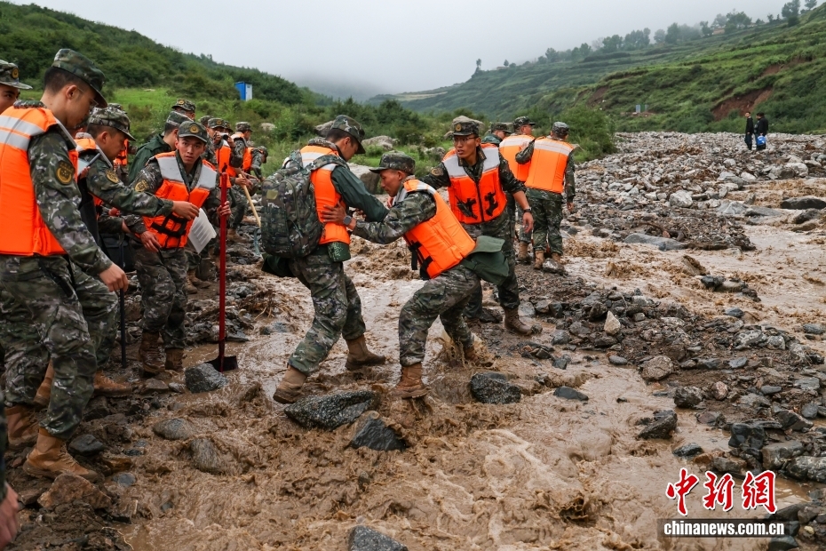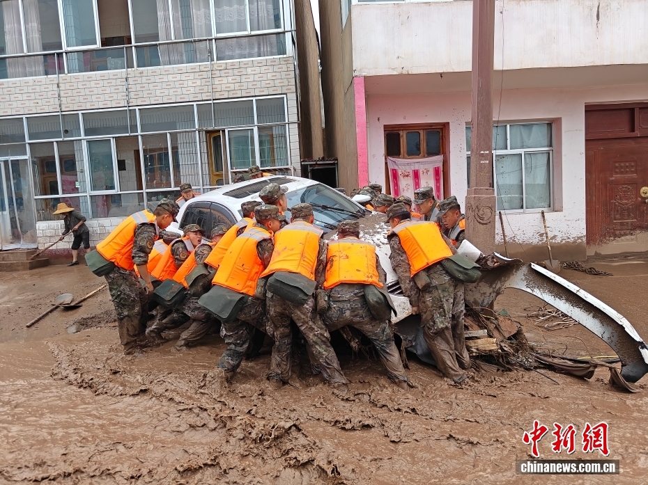 截至8日晚,武警甘肅總隊投入396名兵力開展道路清淤、人員搜救、搬運物資等救援行動,共轉(zhuǎn)移群眾171人、搜救被困群眾5人、救治受傷群眾2人、清理危房6處、轉(zhuǎn)移受損車輛12輛,累計清理淤泥、山石700余方,搜索河道6公里、搶通道路2300米。圖為8月8日,武警甘肅總隊機動支隊官兵挺進(jìn)災(zāi)區(qū)甘肅省蘭州市榆中縣馬坡鄉(xiāng)舊莊溝村展開救援。劉昆 攝