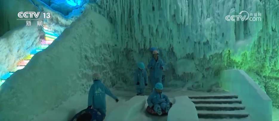 在淮南市焦崗湖畔的“冰簾洞天”景區(qū),游客們仿佛“穿越”到了冬天。1.5公里長(zhǎng)的游玩線路涵蓋了冰上漂流、冰上保齡球等項(xiàng)目,大人、孩子們穿上厚厚的衣服,感受速度與激情。
