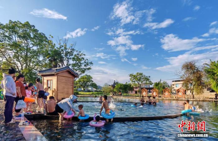 位于福建省清流縣李家鄉(xiāng)鮮水村的“冷泉小鎮(zhèn)”景區(qū)游人如織。不少村民推著手推車在景區(qū)穿梭售賣特色零食,與水池中人們的嬉戲畫面相映成趣,構成一幅動靜相宜、生活氣息濃郁的民俗畫卷。