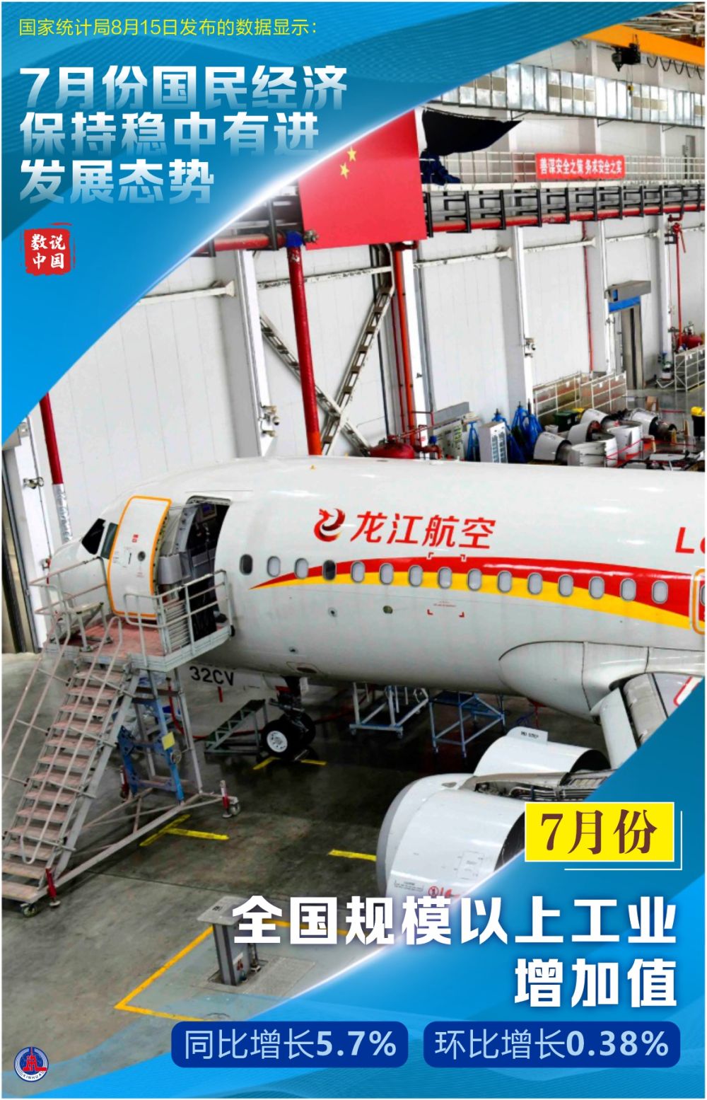國家統(tǒng)計局8月15日發(fā)布的數(shù)據(jù)顯示,2025年7月份,國民經(jīng)濟保持穩(wěn)中有進發(fā)展態(tài)勢,生產(chǎn)需求持續(xù)增長,就業(yè)物價總體穩(wěn)定,新質(zhì)生產(chǎn)力培育壯大,高質(zhì)量發(fā)展取得新成效。