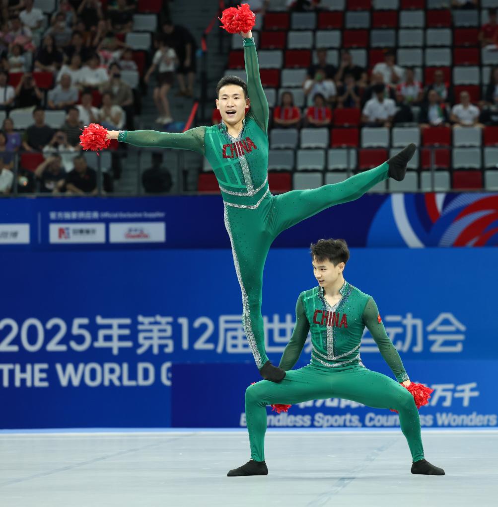 同樣首次進(jìn)入世界運(yùn)動(dòng)會(huì)還有啦啦操,美國(guó)組合艾莉森·霍夫特/悉妮·馬丁斬獲世運(yùn)會(huì)歷史上首枚啦啦操雙人花球金牌。