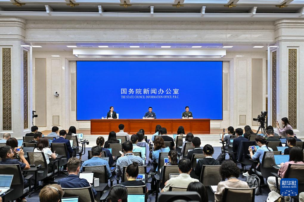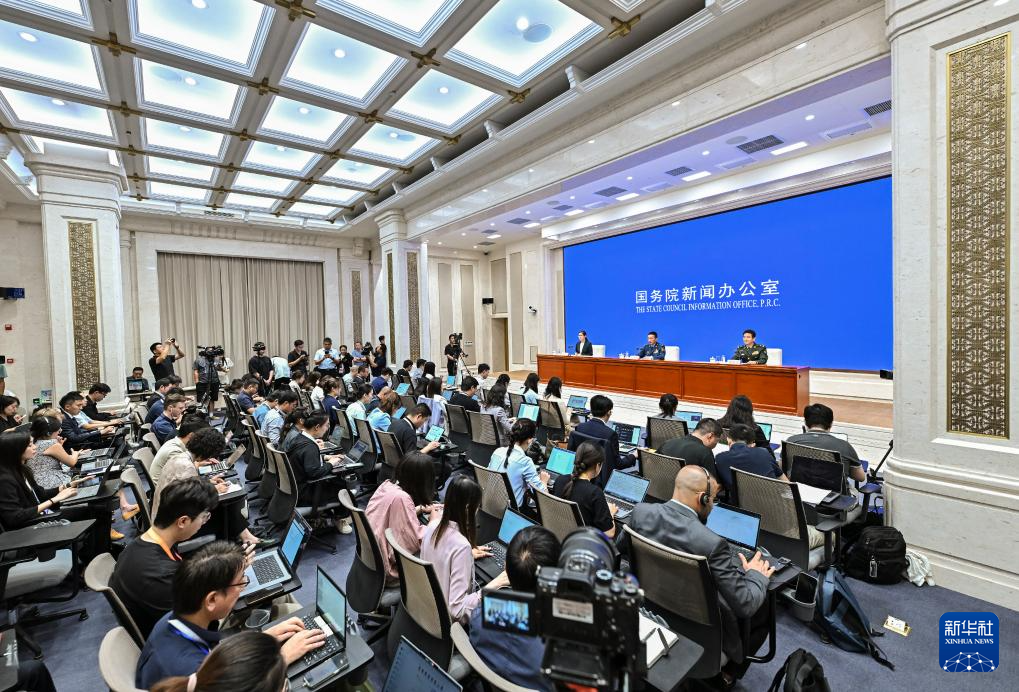 8月20日,國(guó)務(wù)院新聞辦公室在北京舉行新聞發(fā)布會(huì),閱兵領(lǐng)導(dǎo)小組辦公室副主任、中央軍委聯(lián)合參謀部作戰(zhàn)局少將副局長(zhǎng)吳澤棵,中國(guó)人民解放軍中部戰(zhàn)區(qū)閱兵指揮機(jī)構(gòu)辦公室常務(wù)副主任、政治工作部少將副主任徐貴忠介紹閱兵準(zhǔn)備工作有關(guān)情況,并答記者問(wèn)。新華社記者 李鑫 攝
