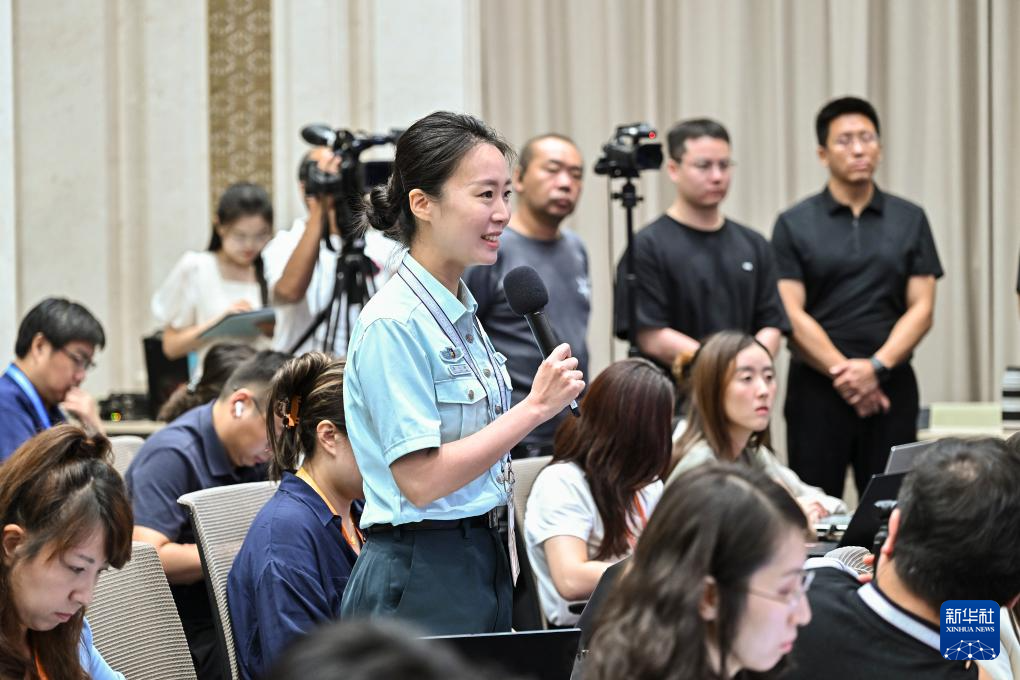 8月20日,國(guó)務(wù)院新聞辦公室在北京舉行新聞發(fā)布會(huì),閱兵領(lǐng)導(dǎo)小組辦公室副主任、中央軍委聯(lián)合參謀部作戰(zhàn)局少將副局長(zhǎng)吳澤棵,中國(guó)人民解放軍中部戰(zhàn)區(qū)閱兵指揮機(jī)構(gòu)辦公室常務(wù)副主任、政治工作部少將副主任徐貴忠介紹閱兵準(zhǔn)備工作有關(guān)情況,并答記者問(wèn)。這是記者在現(xiàn)場(chǎng)提問(wèn)。新華社記者 李鑫 攝