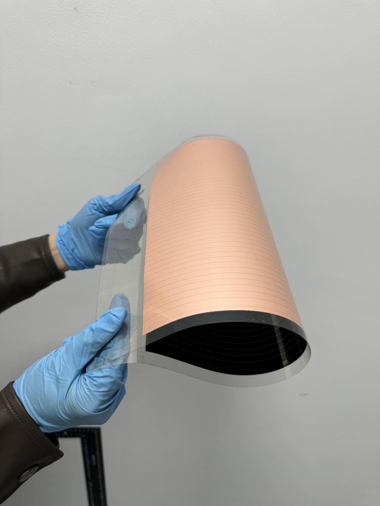 今年,校企聯(lián)合團隊成功將原位涂層技術轉移到工業(yè)級狹縫涂布設備上,實現(xiàn)寬帶隙鈣鈦礦薄膜在800多平方厘米的柔性基板上一次成型。