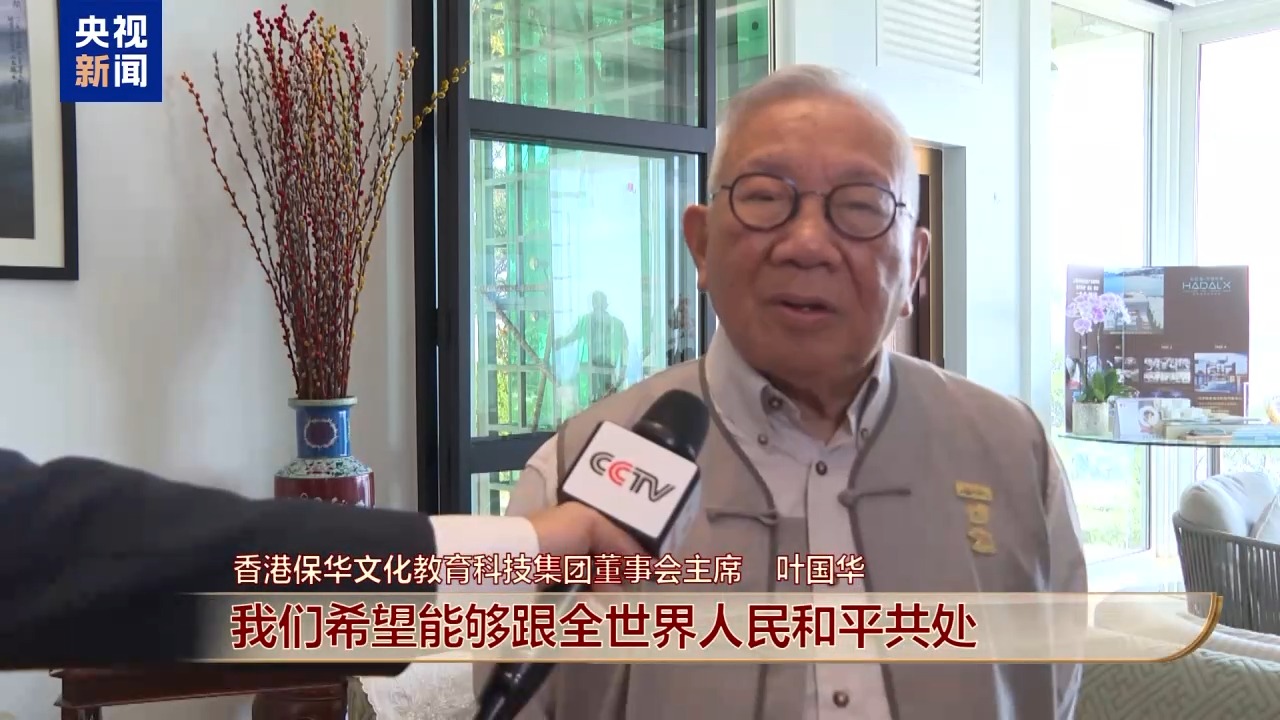 香港保華文化教育科技集團(tuán)董事會主席 葉國華:我一般看電視都坐著。今天我不是坐著而是站著。因?yàn)槲矣米钭鹁吹男膩砜础A?xí)近平主席講話精神是,我們希望能夠跟全世界人民和平共處,能夠以構(gòu)建人類命運(yùn)共同體來帶動全球。